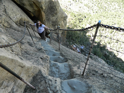To get back out, you have to crawl on your hands and knees through a very narrow space and then climb another tall ladder and then walk up some very steep, shallow steps carved into the cliff. It was all very exciting and stuff.